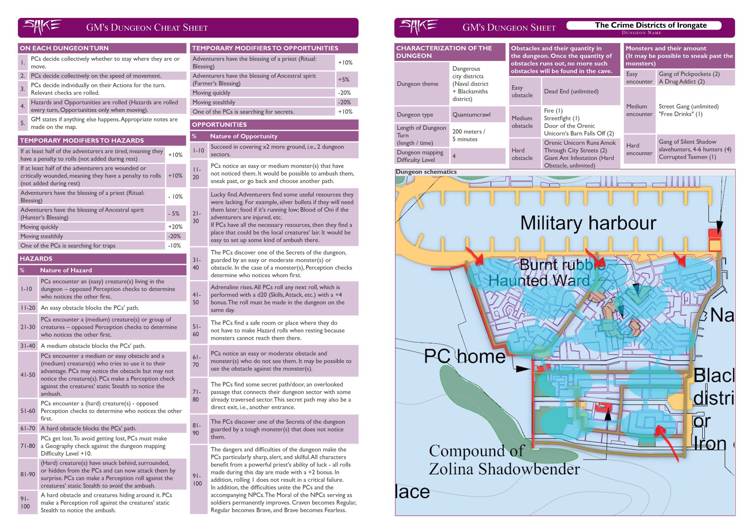 To start, download the GM’s Dungeon Sheet: https://sake.ee/downloads/ (You also find the Dungeon Crawling rules there).