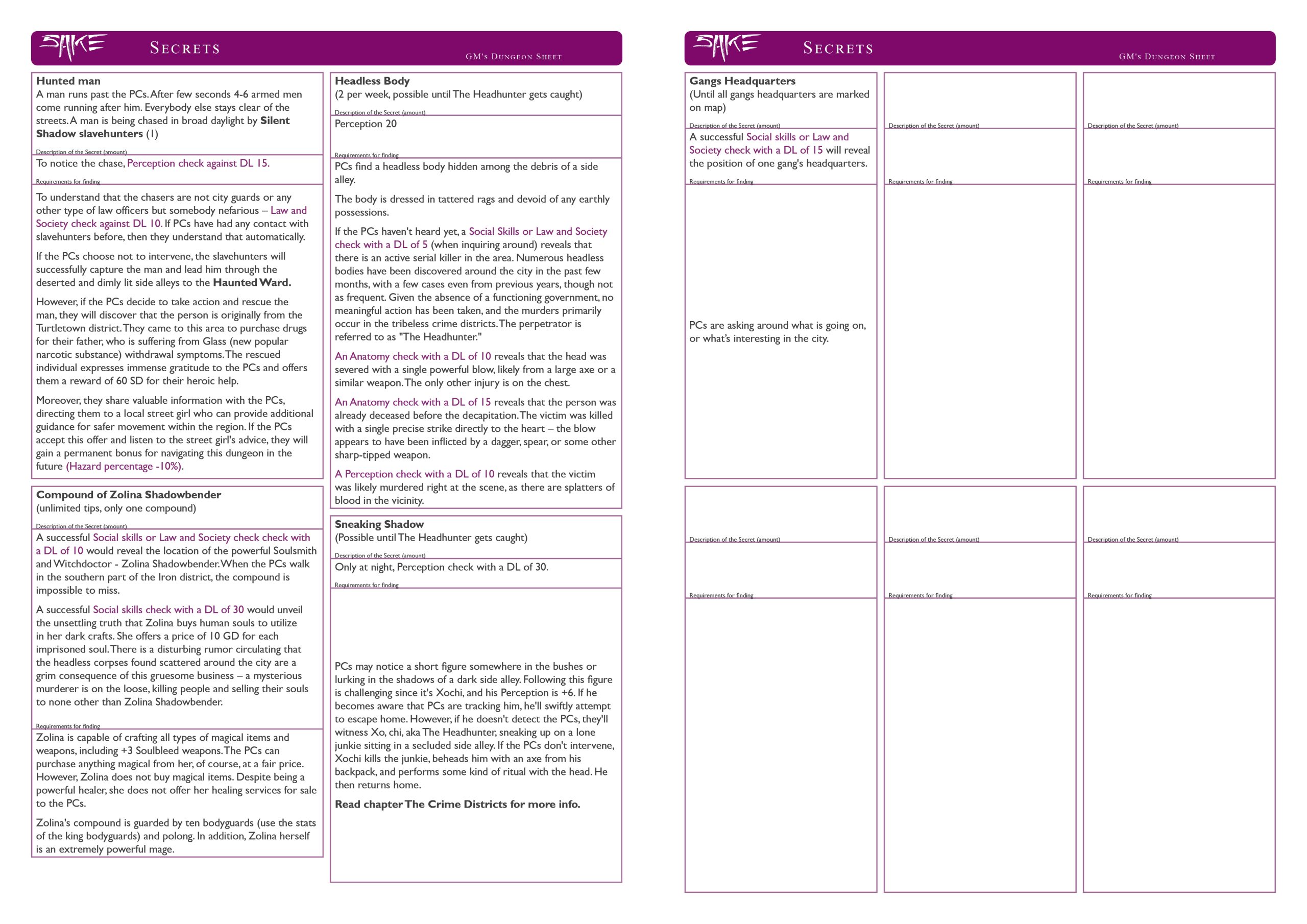 Trailing Zenižlav leads PCs to the Crime Districts and starts the Crime Districts Dungeon Crawl.